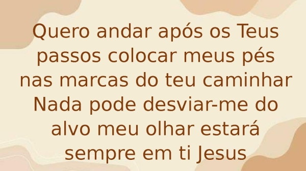 - Quero andar após os Teus passos colocar meus pés nas marcas do teu caminharNada pode desviar-me do alvo meu olhar estará sempre em ti Jesus