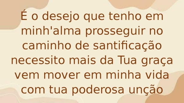 - É o desejo que tenho em minh'alma prosseguir no caminho de santificação necessito mais da Tua graça vem mover em minha vida com tua poderosa unção