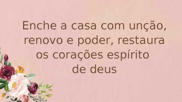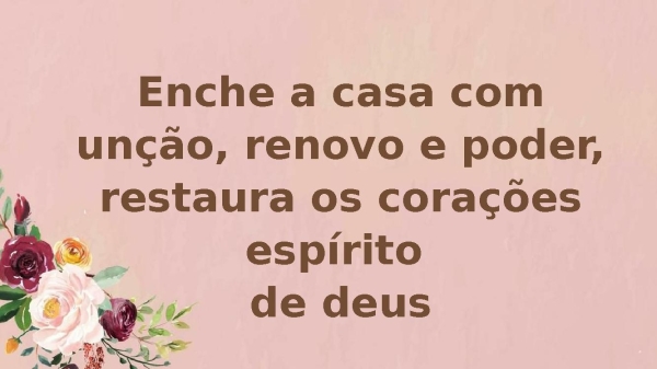 - Enche a casa com unção, renovo e poder, restaura os corações espírito de deus