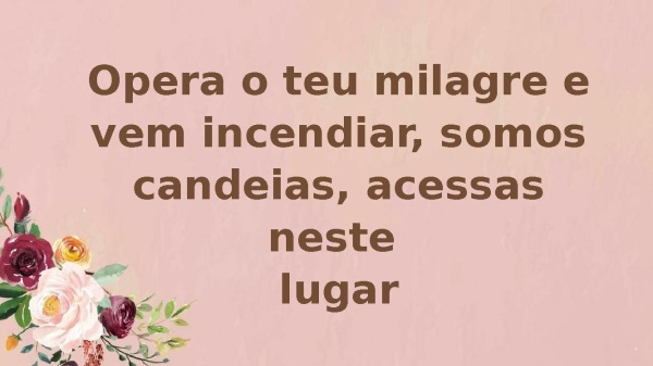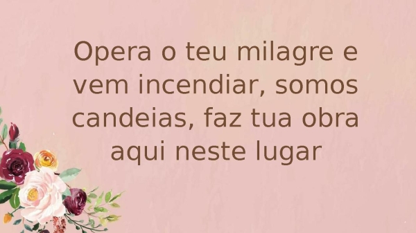- Opera o teu milagre e vem incendiar, somos candeias, acessas neste lugar