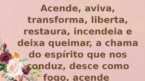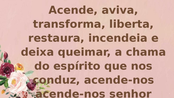 - Acende, aviva, transforma, liberta, restaura, incendeia e deixa queimar, a chama do espírito que nos conduz, desce como fogo, acende nos (3x)