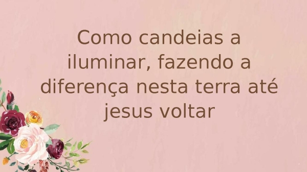 - Como candeias a iluminar, fazendo a diferença nesta terra até jesus voltar