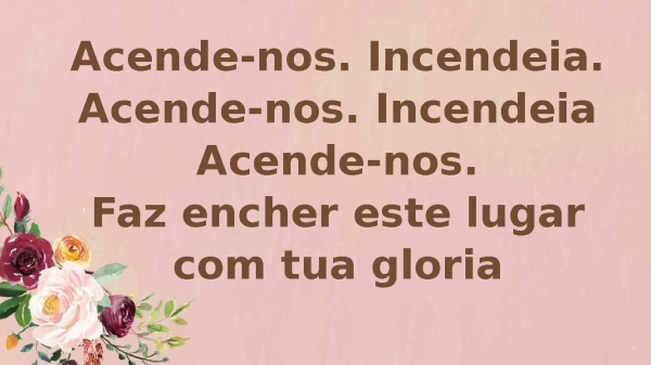 - Acende-nos incendeiaAcende-nos incendeiaAcende-nos.Faz encher este lugarFaz tua gloria aqui descer