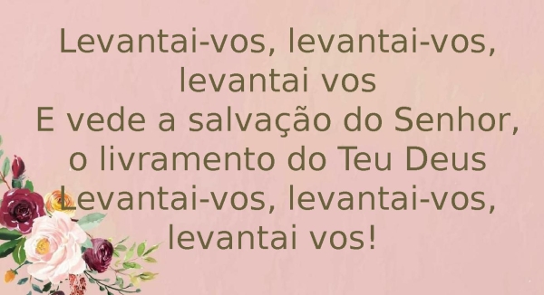 - Levantai-vos, levantai-vos, levantai vosE vede a salvação do Senhor, o livramento do Teu DeusLevantai-vos, levantai-vos, levantai vos!
