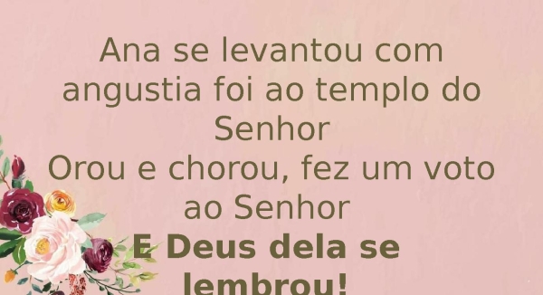 - Ana se levantou com angustia foi ao templo do SenhorOrou e chorou, fez um voto ao Senhor E Deus dela se lembrou!