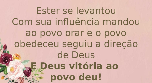 - Ester se levantouCom sua influência mandou ao povo orar e o povo obedeceu seguiu a direção de DeusE Deus vitória ao povo deu!