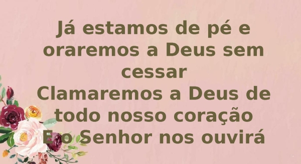 - Já estamos de pé e oraremos a Deus sem cessarClamaremos a Deus de todo nosso coraçãoE o Senhor nos ouvirá