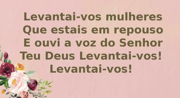 - Levantai-vos mulheresQue estais em repousoE ouvi a voz do Senhor Teu Deus Levantai-vos! Levantai-vos!