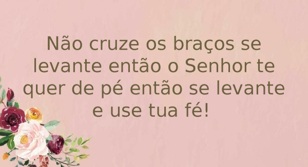 - Não cruze os braços se levante então o Senhor te quer de pé então se levante e use tua fé!