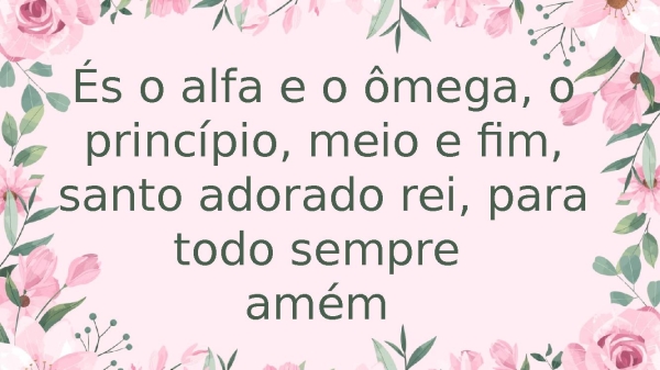 • És o alfa e o ômega, o princípio, meio e fim, santo adorado rei, para todo sempre amém, para todo sempre amém
