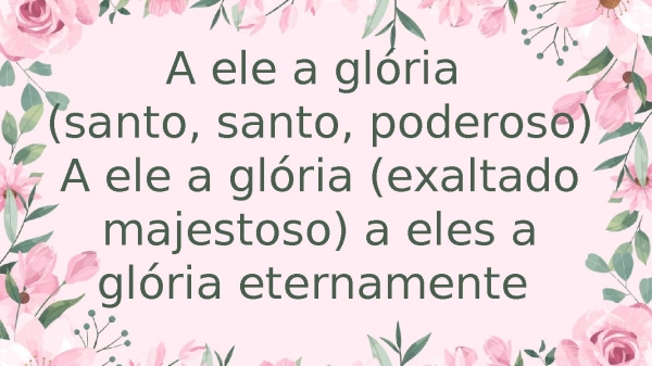 • A ele a glória(santo santo poderoso)A ele a glória (exaltado majestoso)A ele a gloria eternamente