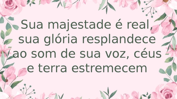 • Sua majestade é real, sua glória resplandece ao som de sua voz, céus e terra estremecem