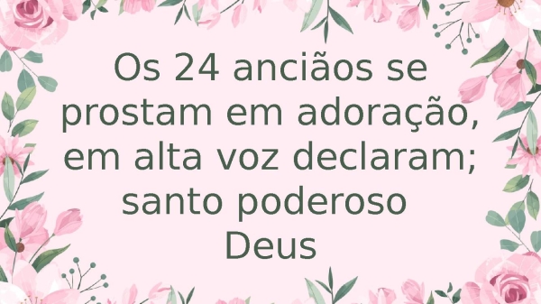 • Os 24 anciãos se prostam em adoração, em alta voz declaram; santo poderoso Deus santo poderoso Deus