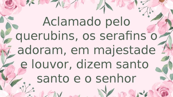 • Aclamado pelo querubins, os serafins o adoram, em majestade e louvor, dizem santo santo e o senhor