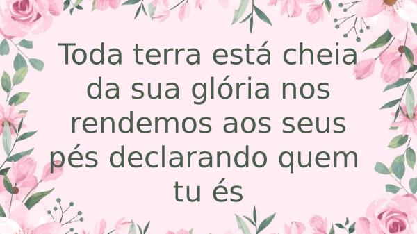 • Toda terra está cheia da sua glória nos rendemos aos seus pés declarando quem tu és