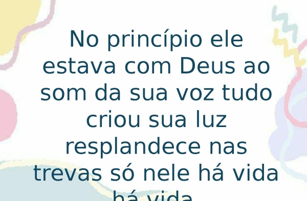 - No princípio ele estava com Deus ao som da sua voz tudo criou sua luz resplandece nas trevas só nele há vida há vida