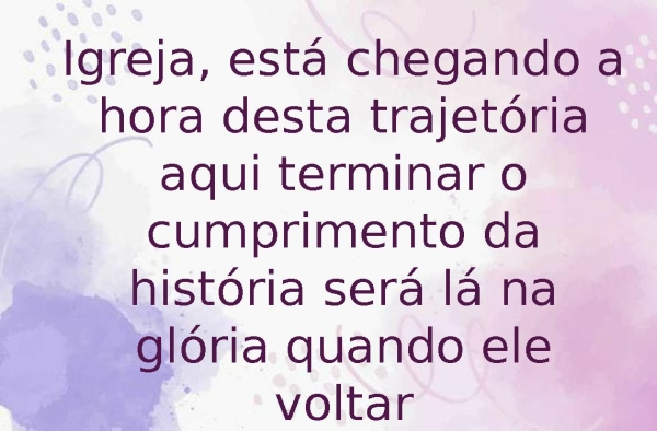 - Igreja, está chegando a hora desta trajetória aqui terminar o cumprimento da história será lá na glória quando ele voltar