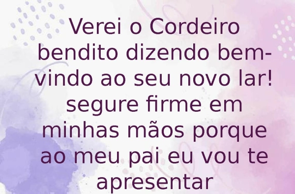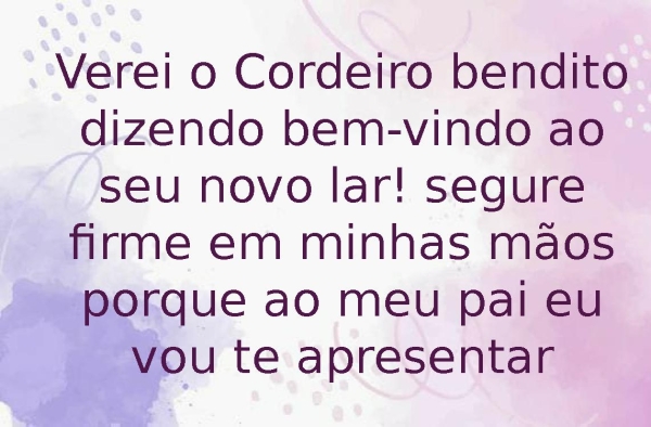 - Verei o Cordeiro bendito dizendo bem-vindo ao seu novo lar! segure firme em minhas mãos porque ao meu pai eu vou te apresentar