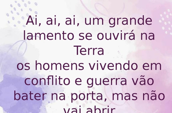 - Ai, ai, ai, um grande lamento se ouvirá na Terraos homens vivendo em conflito e guerra vão bater na porta, mas não vai abrir
