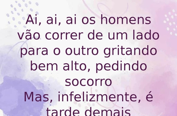 - Ai, ai, ai os homens vão correr de um lado para o outro gritando bem alto, pedindo socorroMas, infelizmente, é tarde demais