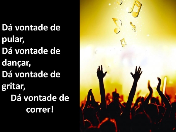 - Dá vontade de pular, Dá vontade de dançar, Dá vontade de gritar, Dá vontade de correr!