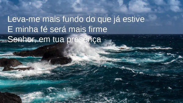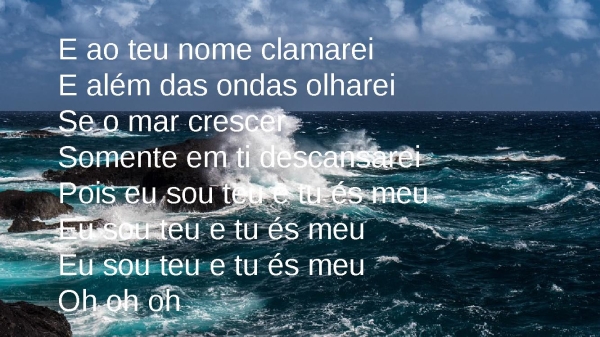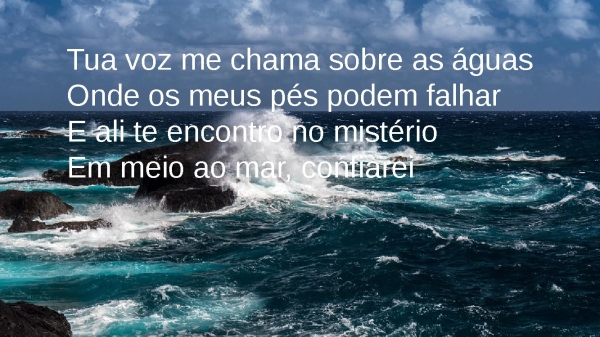 - Tua voz me chama sobre as águasOnde os meus pés podem falharE ali te encontro no mistérioEm meio ao mar, confiarei