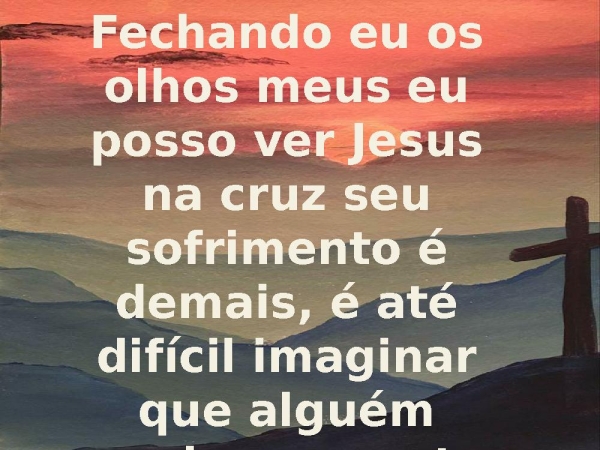 - Fechando eu os olhos meus eu posso ver Jesus na cruz seu sofrimento é demais, é até difícil imaginar que alguém consiga aguentar sofrer assim