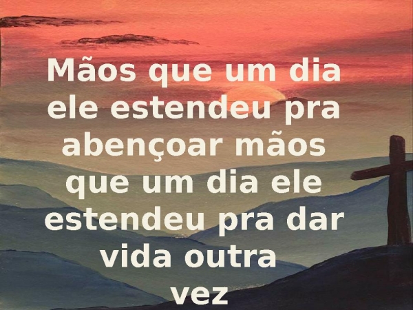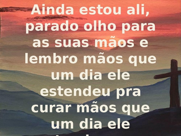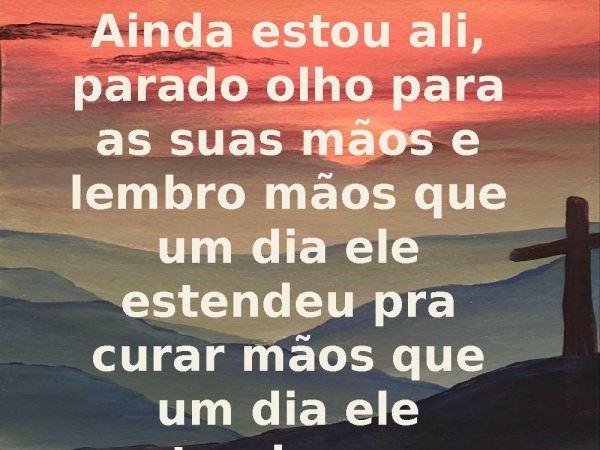 - Ainda estou ali, parado olho para as suas mãos e lembro mãos que um dia ele estendeu pra curar mãos que um dia ele estendeu pra salvar
