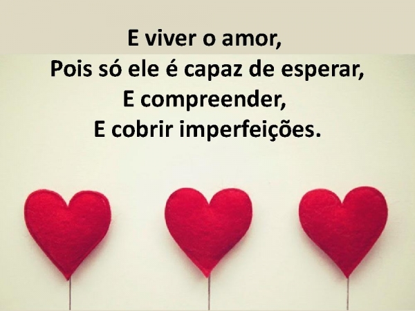 - E viver o amor, Pois só ele é capaz de esperar,E compreender, E cobrir imperfeições.