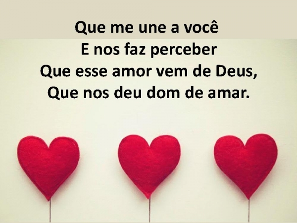 - Que me une a você E nos faz perceberQue esse amor vem de Deus,Que nos deu dom de amar.