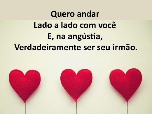 - Quero andar Lado a lado com você E, na angústia, Verdadeiramente ser seu irmão.