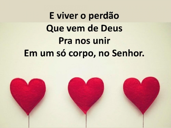 - E viver o perdão Que vem de Deus Pra nos unir Em um só corpo, no Senhor.