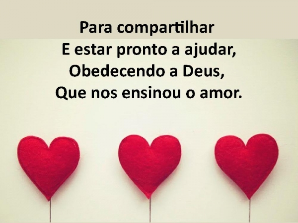 - Para compartilhar E estar pronto a ajudar,Obedecendo a Deus, Que nos ensinou o amor.