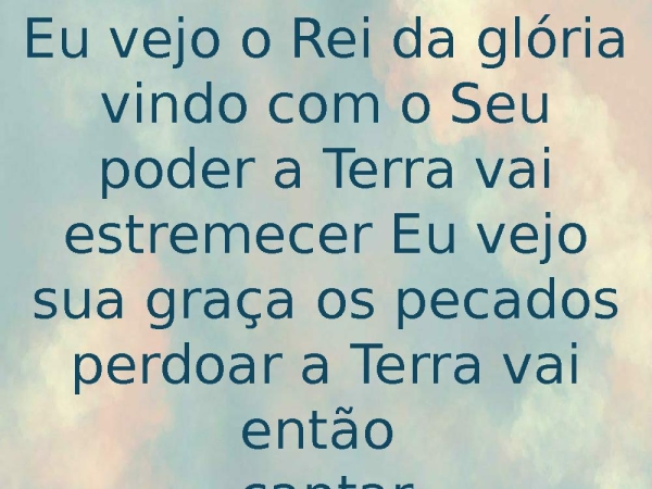 - Eu vejo o Rei da glória vindo com o Seu poder a Terra vai estremecer Eu vejo sua graça os pecados perdoar a Terra vai então cantar