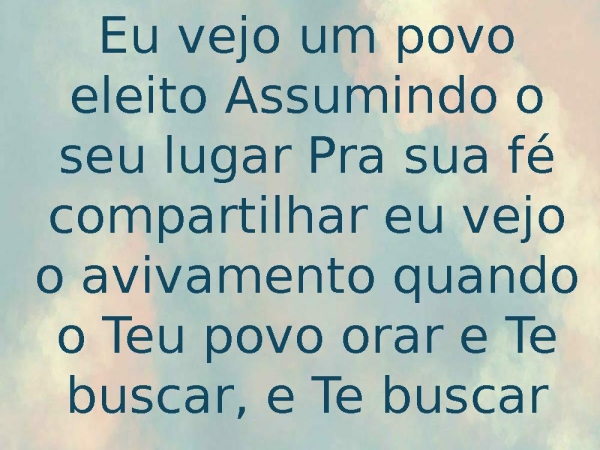 - Eu vejo um povo eleito Assumindo o seu lugar Pra sua fé compartilhar eu vejo o avivamento quando o Teu povo orar e Te buscar, e Te buscar