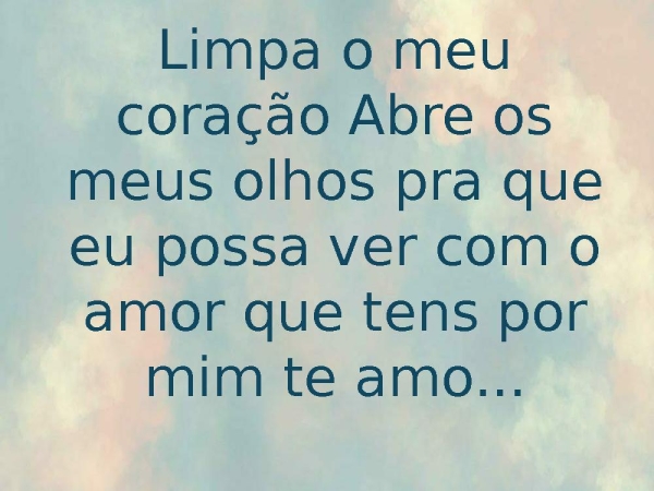 - Limpa o meu coração Abre os meus olhos pra que eu possa ver com o amor que tens por mim te amo...