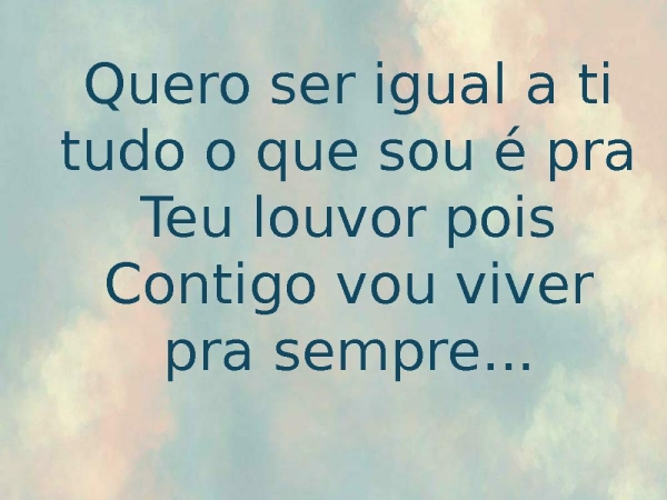 - Quero ser igual a ti tudo o que sou é pra Teu louvor pois Contigo vou viver pra sempre...