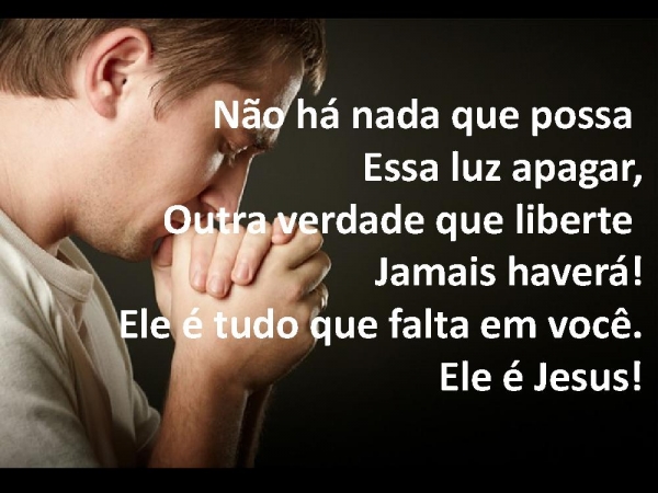 - Não há nada que possa Essa luz apagar,Outra verdade que liberte Jamais haverá!Ele é tudo que falta em você.Ele é Jesus!