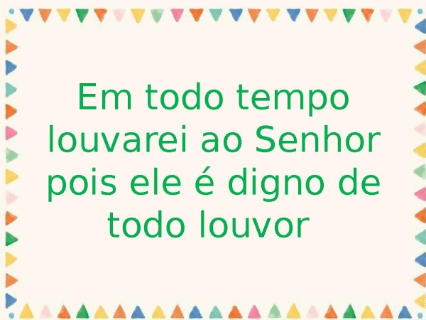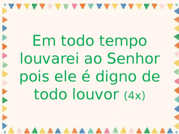 - Em todo tempo louvarei ao Senhor pois ele é digno de todo louvor