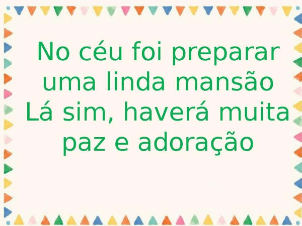 - No céu foi preparar uma linda mansãoLá sim, haverá muita paz e adoração