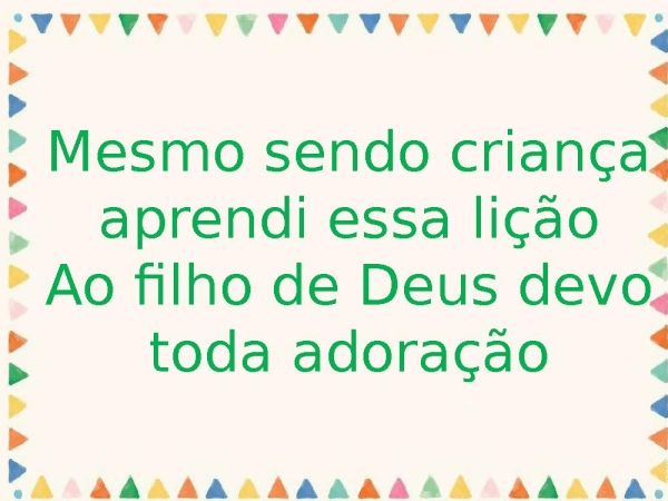 - Mesmo sendo criança aprendi essa liçãoAo filho de Deus devo toda adoração
