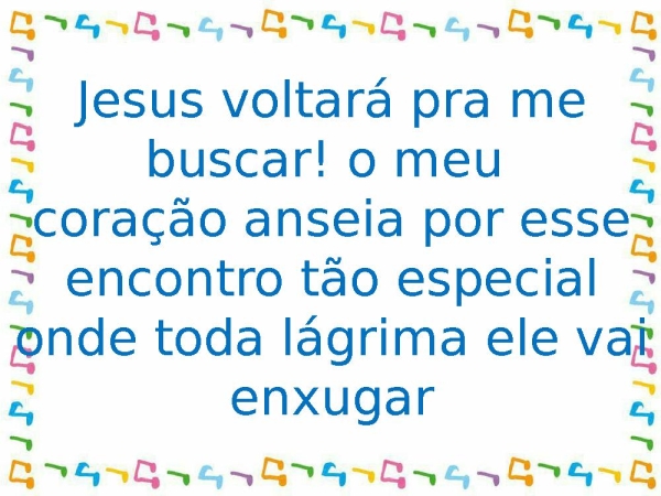 - Jesus voltará pra me buscar! o meu coração anseia por esse encontro tão especial onde toda lágrima ele vai enxugar