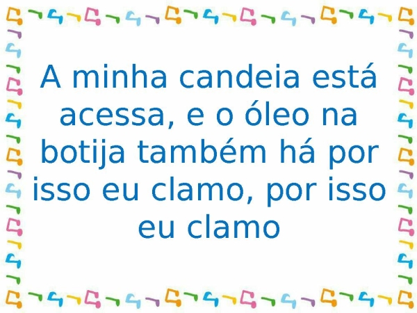 - A minha candeia está acessa, e o óleo na botija também há por isso eu clamo, por isso eu clamo
