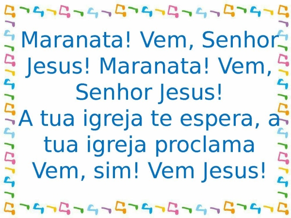 - Maranata! Vem, Senhor Jesus! Maranata! Vem, Senhor Jesus!A tua igreja te espera, a tua igreja proclamaVem, sim! Vem Jesus!