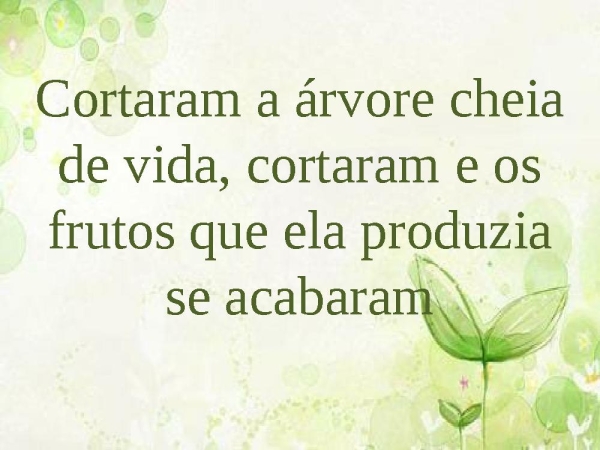 - Cortaram a árvore cheia de vida, cortaram e os frutos que ela produzia se acabaram