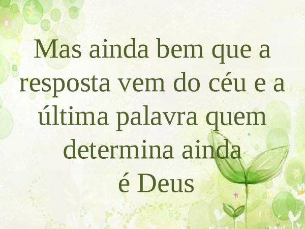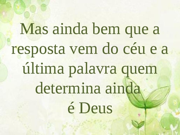- Mas ainda bem que a resposta vem do céu e a última palavra quem determina ainda é Deus