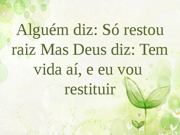 - Alguém diz: Só restou raiz Mas Deus diz: Tem vida aí, e eu vou restituir