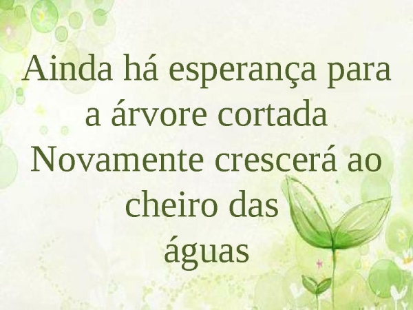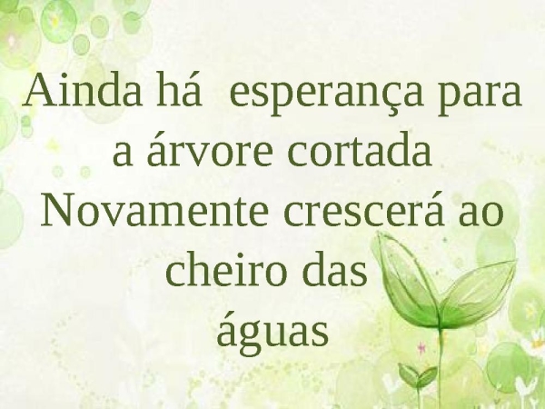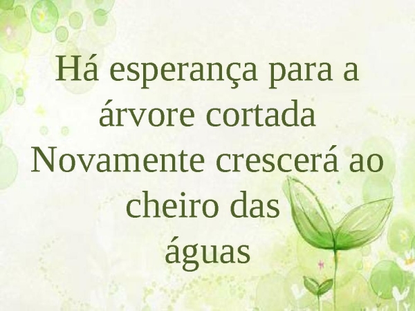 - Há esperança para a árvore cortadaNovamente crescerá ao cheiro das águas