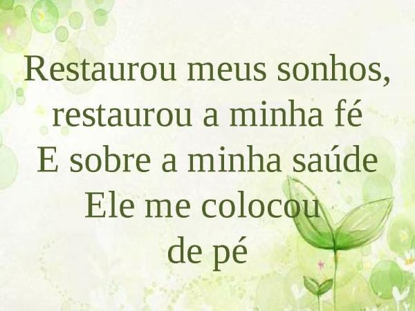 - Restaurou meus sonhos, restaurou a minha féE sobre a minha saúde Ele me colocou de pé