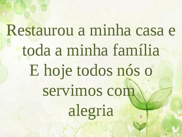 - Restaurou a minha casa e toda a minha famíliaE hoje todos nós o servimos com alegria